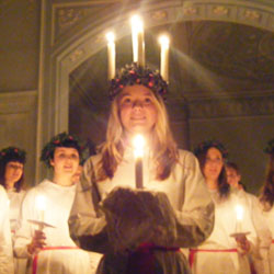 Saint Lucia – Celebrated December 13th in major parts of Scandinavia, with start in Sweden. The most commonly used explanation for the origin of this celebration is that it concerns a young Italian woman from Syracuse on Sicily (Italy) who around 300 AD was forced to marry a man who did not share her faith, and in order to not having to marry him she took her eyes out. Before the new Gregorian Calendar, the Lucia day occurred during the day of the winter solstice but this later changed. Again, it’s common to make extra festivities during a winter solstice. The origin of the Lucia celebrations in Sicily differs entirely from the one in Sweden. The Swedish Lucia tradition actually seems to be separated from the saint altogether, and the name Lucia was tied to the winter solstice festivities during a later stage. It wasn’t until around the year 1900 when the Lucia tradition was established and commonly celebrated in Sweden. The way it has been celebrated has changed since the year 1900, but in schools today the Lucia and her maids sing Lucia songs and christian christmas songs (and a few others) and that in itself is spectacular. Because “forcing” a religion on someone is usually not acceptable in schools, so religious songs or teachings would normally not pass, BUT since the Lucia tradition is so old and so loved this tradition is an exception. Even if a parent in school would protest, all other parents would overrule the protest, and the tradition continues. This means students will continue to be affected by the glorious gospel about JESUS CHRIST who the Lucia sings about. The Lucia songs can be heard in public places all around the country and on TV, and it’s a great way to evangelize! Children often sing these christian songs to their grandparents or similar, when visiting them in their homes this special day. Lucia on youtube can be viewed here: