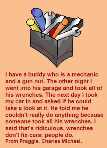 – Guns aren’t evil or the cause of violent situations. Like a hammer drives the nails, guns are the tools of these crazies