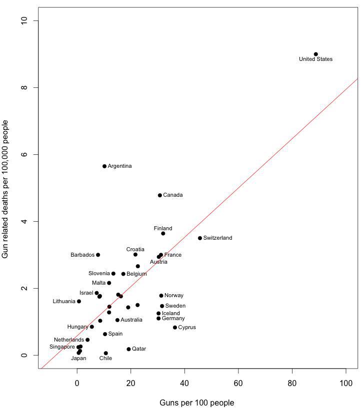 – In Switzerland it’s very common to own guns also for protection and they have a low homicide rate, so this shows gun ownership is not related to murder