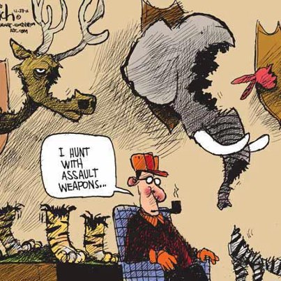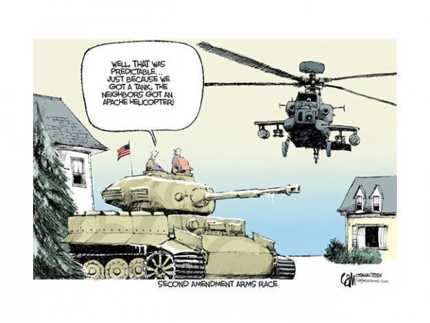 – Why is it so bad to be able to buy lots of guns? It is also sad that so many people are obese because of these sheer amount of forks and spoons available to them