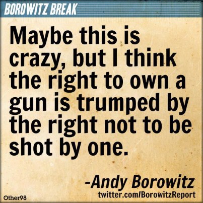 So that is the goal for the nation? To reach a level where there are so many uncontrolled guns in circulation (not to mention that a person can store up 25 shotguns in his home without a single gun seller saying “What?”)  that normal law-abiding people would feel the need to go protected even at the movies, while eating in a restaurant, on the beach, when taking your dog for a walk, etc? If there is a gun control, this could prevent criminals from obtaining guns in the first place, resulting in that we don’t need to carry guns for protection while living our every day lives.