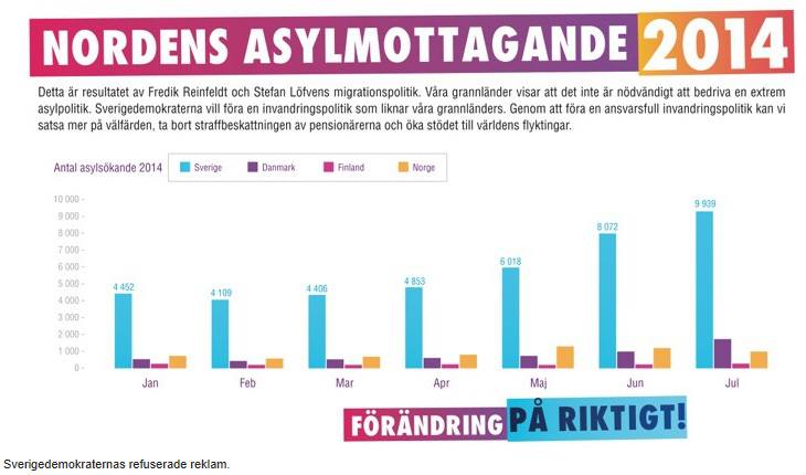 “Under 2013 var, enligt Migrationsverkets egen officiella statistik, den totala invandringen till Sverige 116 600 personer. Den största gruppen var antingen adoptivbarn, hemvändande svenskar eller personer som kommit hit genom den fria rörlighet vi har inom EU för att studera eller arbeta. Endast en dryg tredjedel av totala invandringen var flyktingar inklusive anhöriga till dem, totalt 40 000 personer. Den största delen av så kallad invandring till Sverige är naturlig migration som sker runt om i världen, även svenskar flyttar till andra länder för att arbeta, studera eller på grund av giftermål.”