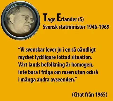 “Snackar om problem: att behöva en debatt omkring nationell tillhörighet för olika etnictiter – det problemet hade vi inte, innan mångkulturen. Problemet är gigantiskt. Jag har bott sen 30 år i Sverige. Är fortfarande norska. Förblir det.Mina efterkommare kallar sig även norrmän. Det handlar om anknytning och folksjäl. Vi är OLIKA i tanke, ord och mening, olika i kynnet.—-I ett normalt land, är detta ett smärre problem, som ordnar sig med tiden. I Sverige med UTANFÖRSKAPEN som ständigt växer, är största problemet i dag att skapa solidaritet med Sverige. Annars rämnar landet. UTANFÖRSKAPEN heter så, för att de rent solidariskt står utanför Sverige. Man har solidaritet med den egna släkten och hemlandet, via tv-kanaler, språk och hemresor. -till andra delar av världen. —- Detta lär vara svårt att begripa för väldigt många. Att blanda in de fem etniska minoriteterna i detta, är meningslöst. De är ändå anpassade till Sveriges lag. UTANFÖRSKAPEN är INTE anpassade till svensk lag. Man ställer sig medvetet utanför, då man inte har intresse av Sverige. Man är inte SVENNE, för man tycker svenskar är dumma, fega, konflikträdda, underkuvade, hunsade, piskade och går med på att bli plågade. Ingen vettig människa vill anamma en sådan identitet. — Så med Mångkulturen har vi fått enorma problem. Björn Söder säger det kommer ta tid att få landet rätt igen. Ja — den soppan mångkulturen skapat, den kommer att smaka ruttet länge.”