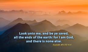 fastän du inte kände mig, 6 för att man skulle förstå både i öster och väster att det inte finns någon utom mig. Jag är Herren och det finns ingen annan.-–14 Så säger Herren:Vad egyptierna har skaffat sig genom arbete och nubiernas och Sebas resliga folk med handel, det skall allt gå över i din hand och höra till dig. De skall följa efter dig, i kedjor skall de gå. Och de skall falla ner inför dig och rikta sin bön till dig: “Endast hos dig är Gud, och det finns ingen mer, ingen annan Gud.“—18 Ty så säger Herren, han som har skapat himlen, han som ensam är Gud, som har format jorden och gjort den. Han som har berett den har inte skapat den till att vara öde utan format den till att bebos: Jag är Herren, och det finns ingen annan.—21Tag till orda och lägg fram er sak! Ja, låt dem tillsammans rådslå. Vem har sedan lång tid låtit er höra detta och för längesedan förkunnat det? Har inte jag, Herren, gjort det? Och det finns ingen Gud utom mig, jag, en rättfärdig Gud som frälsar, ingen utom mig. 22 Vänd er till mig och bli frälsta, ni jordens alla ändar, ty jag är Gud och det finns ingen annan.23 Jag har svurit vid mig själv, ett sanningsord har utgått från min mun, ett ord som inte skall tas tillbaka: För mig skall alla knän böja sig. Alla tungor skall ge mig sin ed